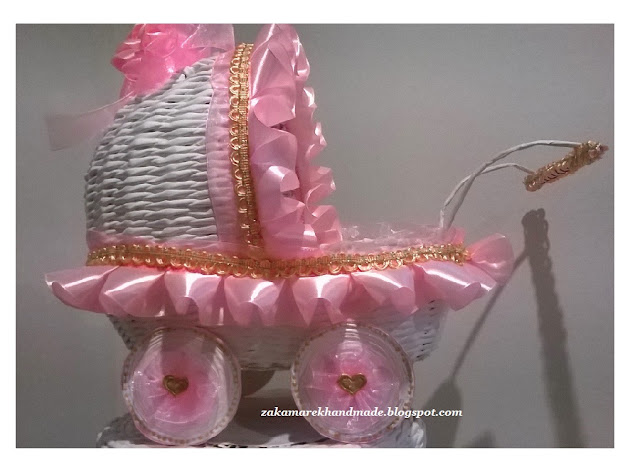 Obiecuję już wracam do brzegu. Dziś przedostatnia część wózkowej ewolucji. Po perypetiach z targującą się p. Lidią postanowiłam robić na zamówienie odrobinę mniejsze wózki. Odkryłam w sobie pasję kwiatów ze wstążki, Były to jeszcze czasy, kiedy moja maszyna do szycia była sprawna i po japońsku ( czyli jakotako :D) chciała ze mną współpracować. Wózeczek jak się plecie każdy wie :D, kfiatki ( tak tak celowo tak piszę nie oburzajcie się, że analfabeta wrr) wstążkowe, falbaneczki i te sprawy spersonalizowane oczywiście - wszystko razem poskładałam i wyszło jak na załączonym obrazku